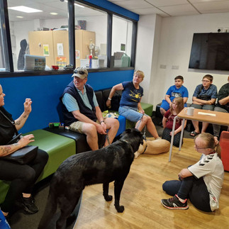 Lovely visit from the British Guide Dog Association today at our AIM Thursday group. Always informative and the attendees love interacting with the dogs.